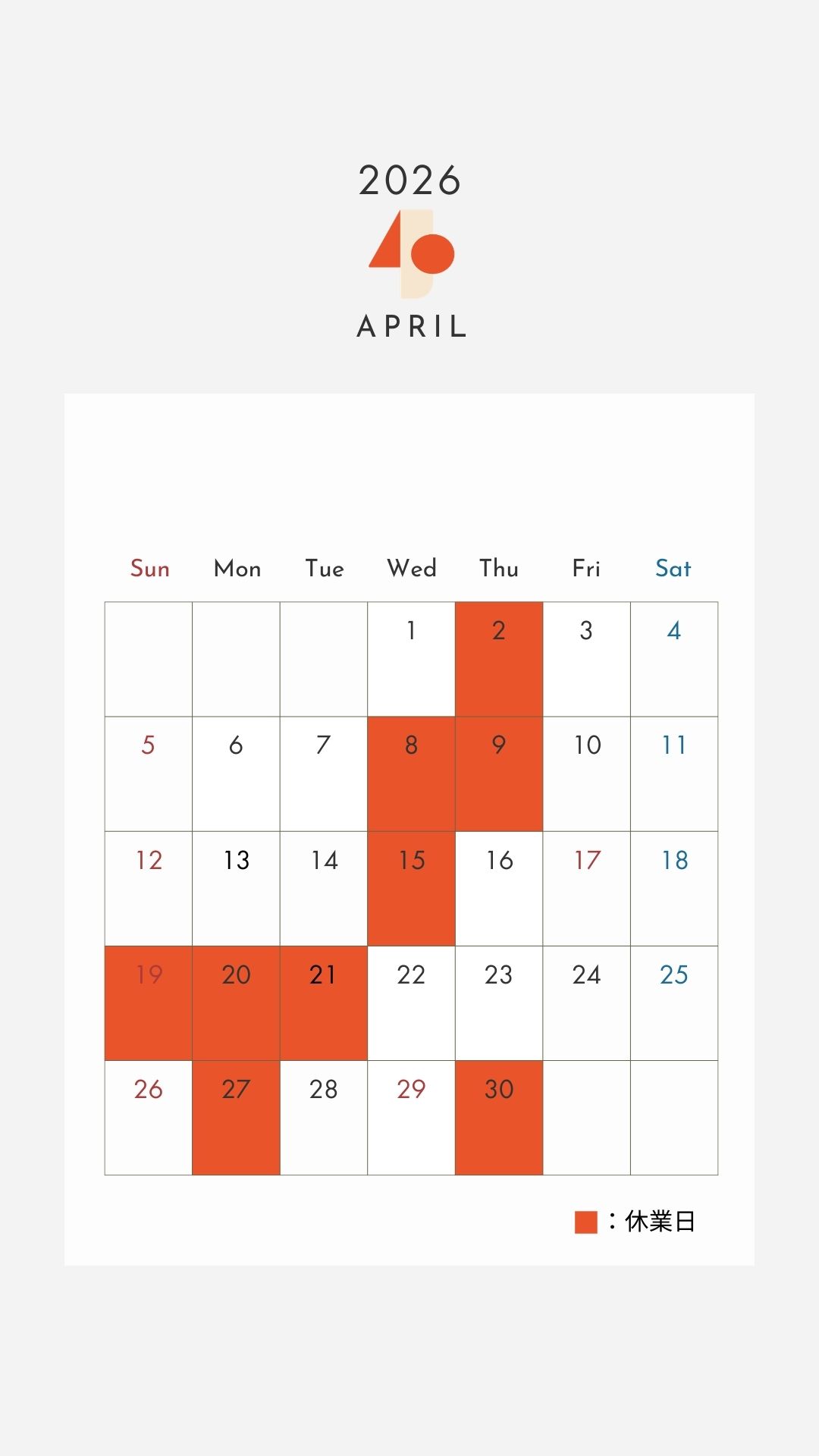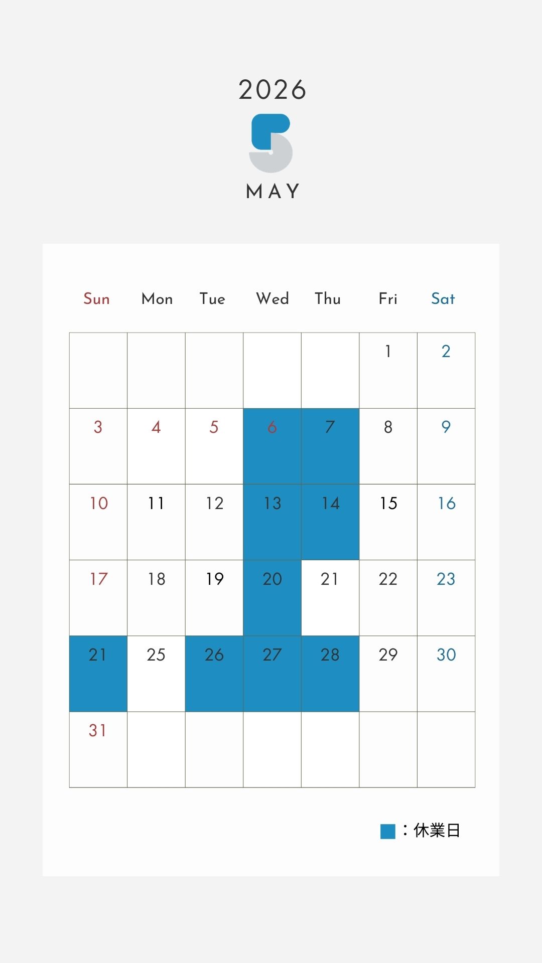 4月・5月の休業日のお知らせです!