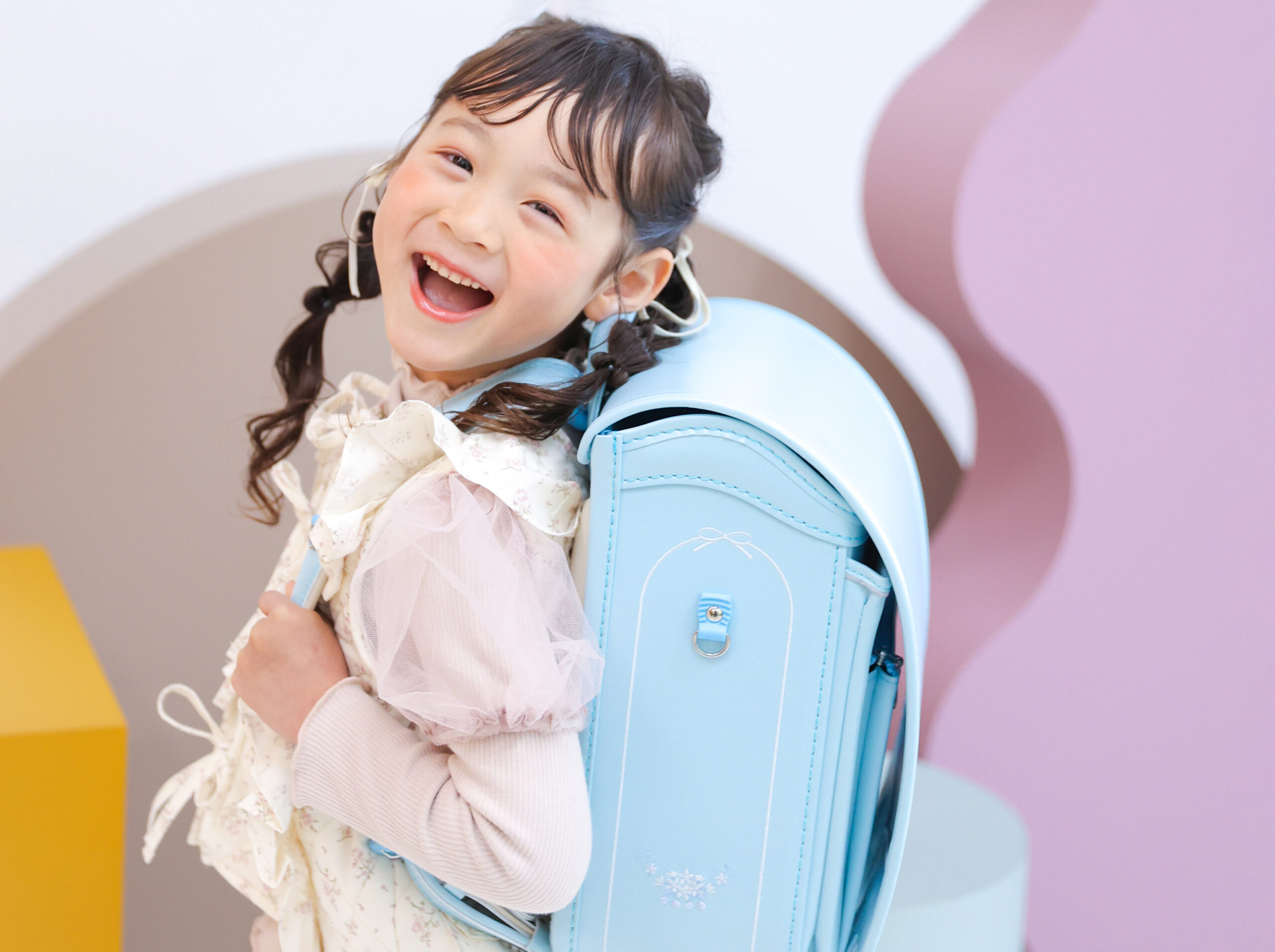 小さなランドセル、ちょっぴり誇らしげな表情。